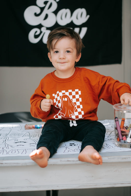 Checkered Ghost Crewneck Sweatshirt - Orange