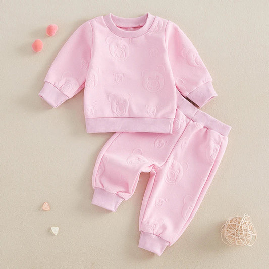 Baby Toddler Boys Girls 2Pcs Jogger Set Bear Pattern Long Sleeve Crewneck Top Long Pants Fall Outfit