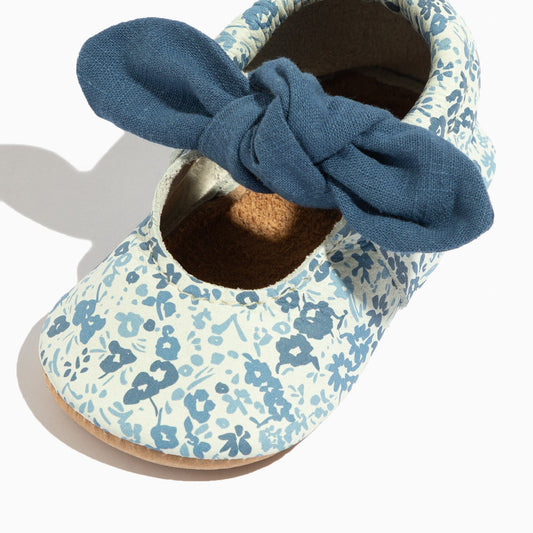 Sold outBlue Blooms Knotted Bow Baby Shoe