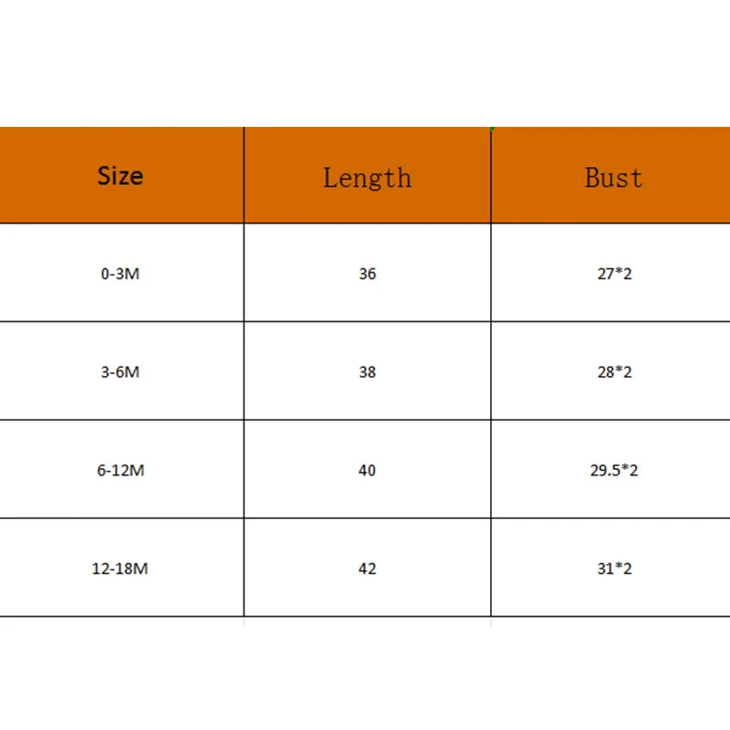 0-3M Length: 14.17 Bust: 21.26 Advised Age: 0-3 Months