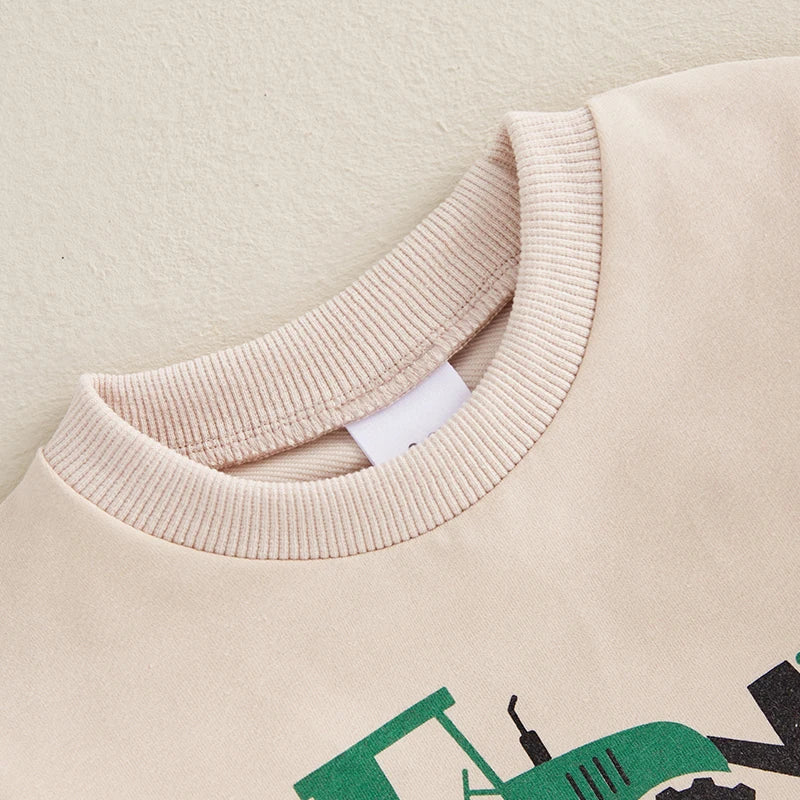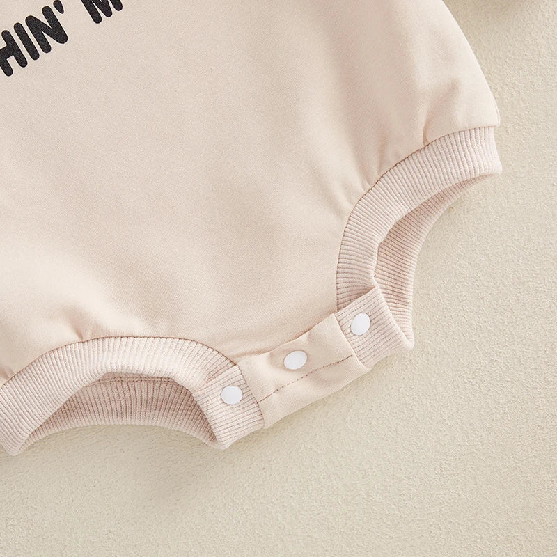 Baby Boys Pushin' My Luck Romper Letter Shamrock Tractor Print Long Sleeve Crew Neck Bubble Jumpsuit