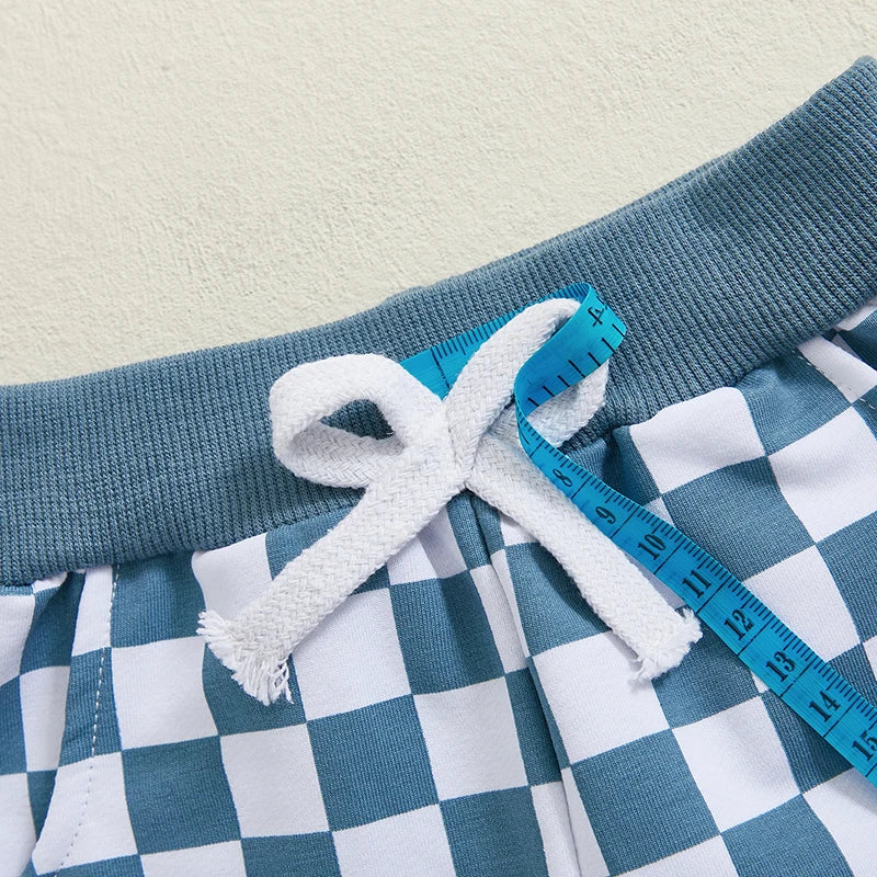 Baby Toddler Boys 2Pcs Outfit Checker Print Long Sleeve Hooded Top Hoodie with Elastic Waist Long Pants Jogger Set