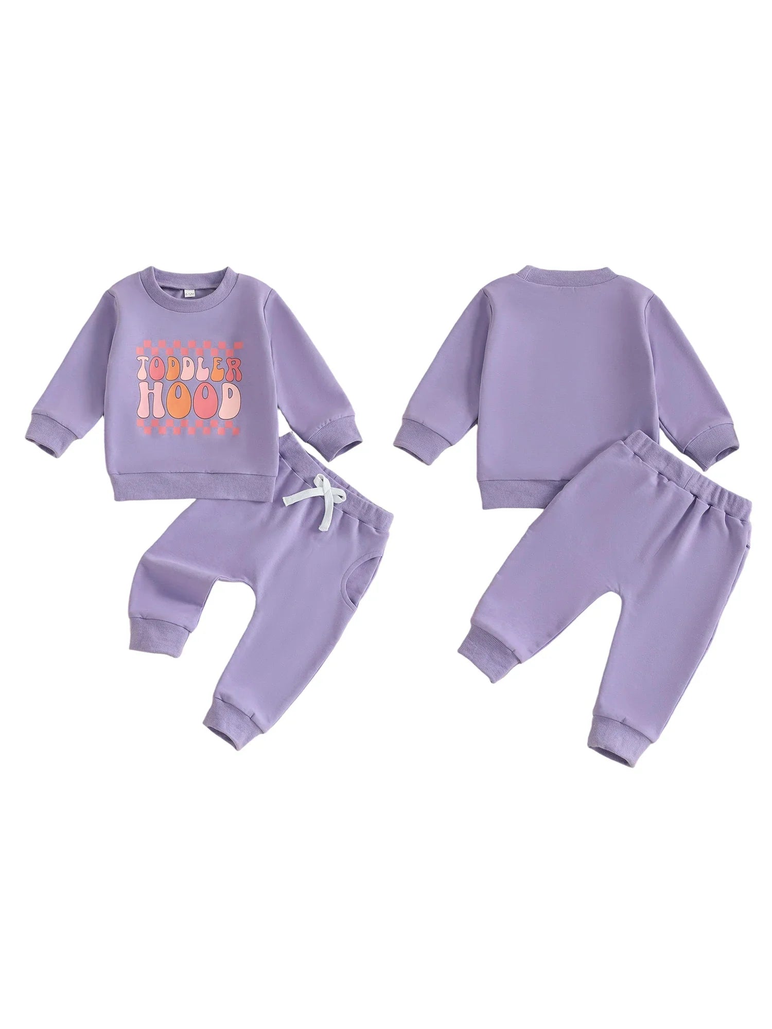 Baby Toddler Girls 2Pcs Toddler Hood Outfit Letters Print Long Sleeve Crew Neck Top with Elastic Waist Pants Fall Clothes Jogger Set