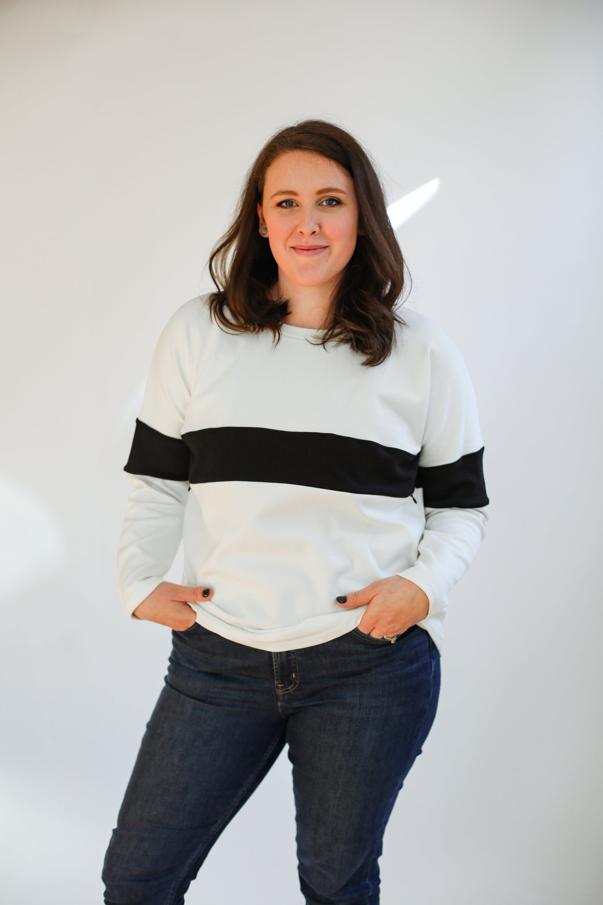 Stay cozy, comfortable and stylish in this super discreet breastfeeding crewneck. We're never sure if we should call this a heavy weight long sleeve or a lightweight sweatshirt... so take that for what it's worth. :) Made of a cotton and spandex blend is the perfect combination of stretchy and soft.Â